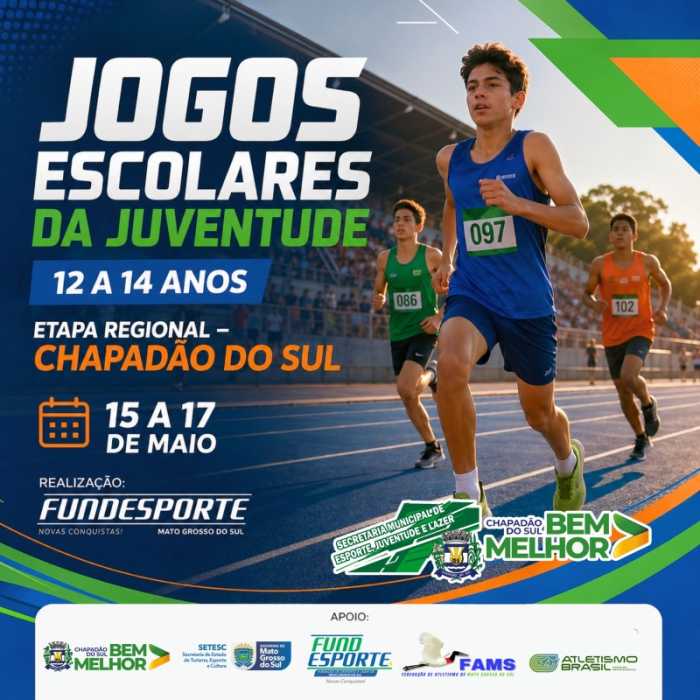 Reprodução Chapadão do Sul será sede da etapa regional dos Jogos Escolares de Mato Grosso do Sul entre os dias 15 e 17 de maio. A competição vai reunir jovens atletas de 12 a 14 anos em provas de atletismo, movimentando o município com disputas de velocidade, resistência e técnica.